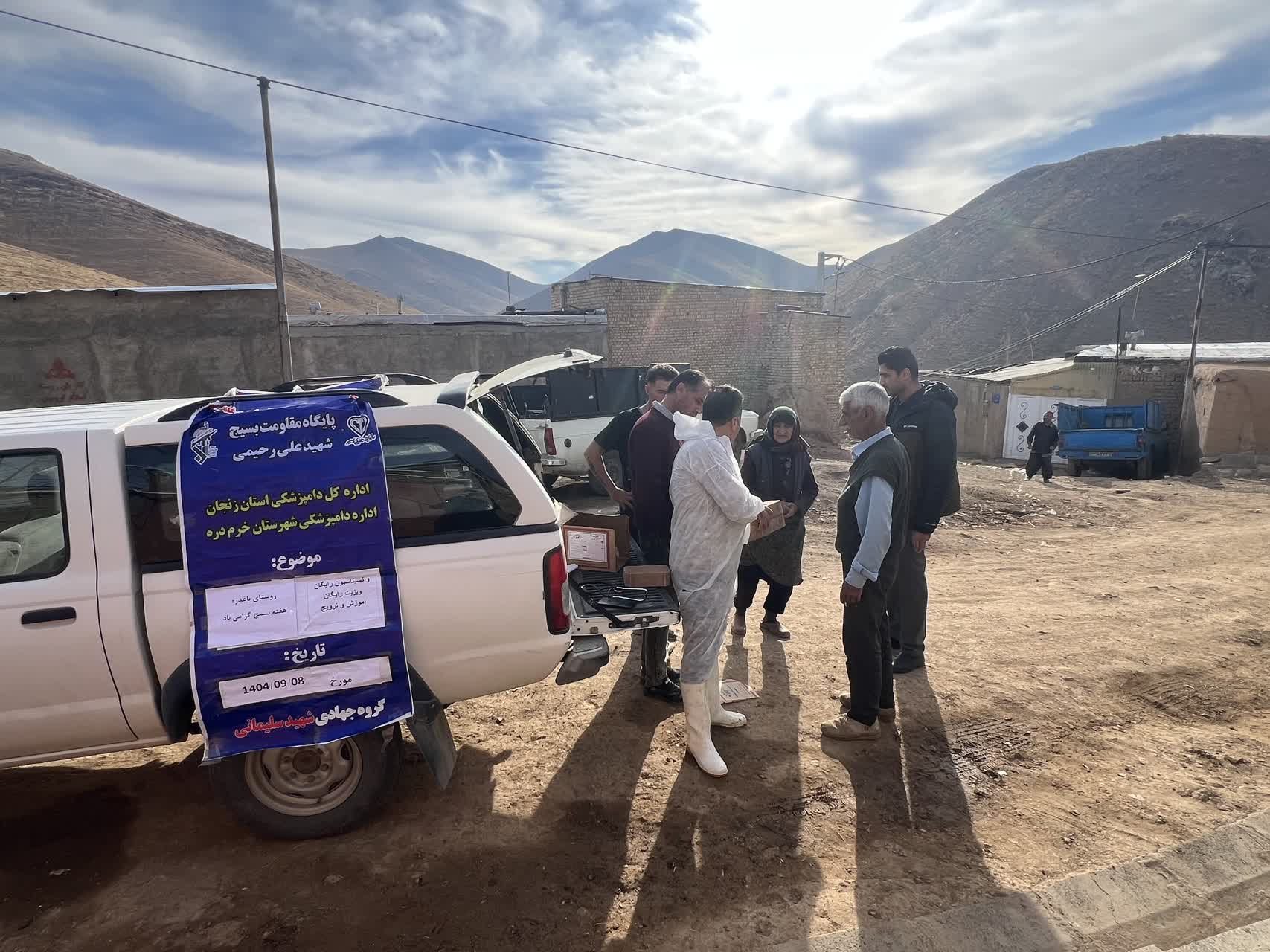 اداره دامپزشکی خرم‌دره به مناسبت هفته بسیج، اردوی جهادی در روستای باغدره برگزار کرد که شامل خدمات رایگان دامپزشکی، آموزش و ترویج چهره به چهره و حمایت‌های مردمی بود.